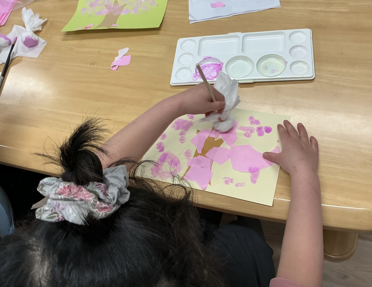 小学生は宿題、未就学児はぬりえやシール貼り・自由あそびをします。